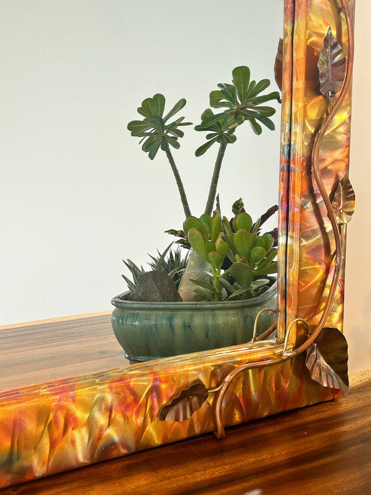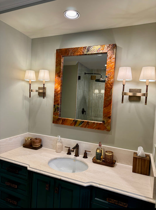 Large Handcrafted Copper Mirror with Patina Finish a Unique Home Decor, Vanity Mirror, Custom Frame, Mirror Wall Art from Hawaii