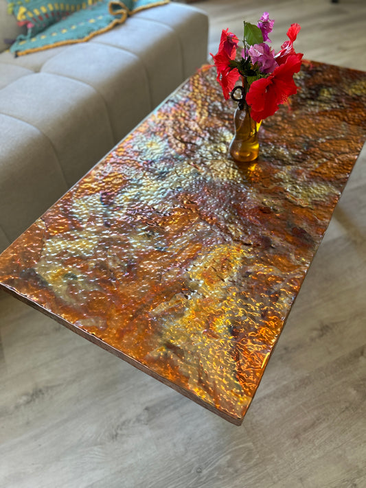 Hammered Copper Drum, Handmade Copper Accent Table, Modern Metal Furniture, Round Copper End Table, One-of-a-kind Copper Table, Modern Mountain Decor